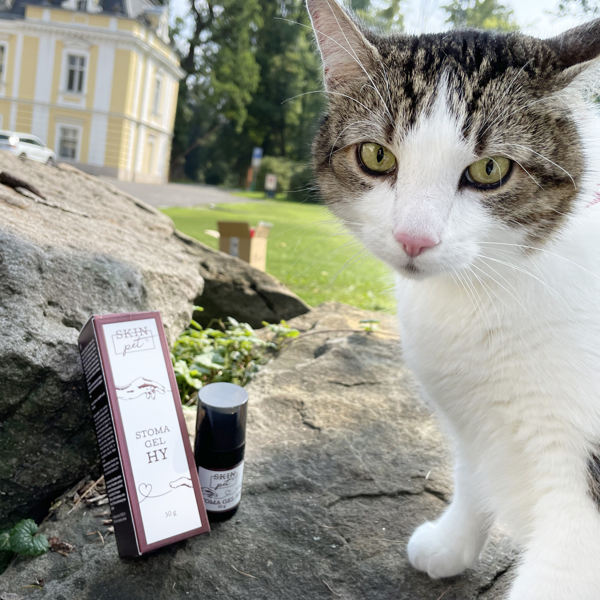 Ako prvú pomoc použite SkinPET® Stoma Gel HY s kyselinou hyalurónovou ako antiseptický a protizápalový prostriedok pri zápale ďasien alebo iných problémoch v ústnej dutine. Zmierňuje akútny zápal, zmierňuje bolesť a opuch, zastavuje krvácanie a vďaka kyseline hyalurónovej podporuje rýchlejšie hojenie. Gél nesteká, neštípe, nedráždi a jeho aplikácia je pre mačku úplne bezbolestná. Postihnuté miesto potierajte gélom 3 - 4 krát denne, kým príznaky nezmiznú.